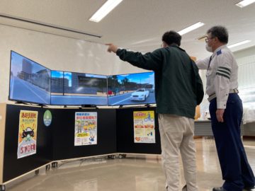 ②交差点での横断を疑似体験できる歩行者シミュレータを使用して、何に気を付けたらよいか?を学ぶ講座。