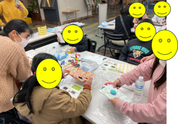 黙々と制作する方、最後まで自分で頑張って制作した方、自作をあきらめ逃走しちゃった方(笑)などなど、とても賑やかな制作現場でした。「めっちゃ可愛いのが作れた」「これは便利だわ」「良いもの作れた♪」み~んな出来上がりに満足してくれました。