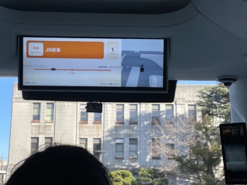 岐阜駅のロータリーに進入。バスの運転手さんたちはアイコンタクトで「お先にどうぞ・ありがとう」という感じでレーンを譲り合うじゃないですか、AIには気持ちがないから、相手が止まっているから自分は動く、相手が動いてるから自分は止まる。という機械的なリアルな一面をみました(笑)