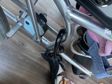 赤信号で止まった時に車いすのブレーキを解除してみたけど、車いすは全く動かなかった!!しっかり固定されていて安心あんしん(^^♪