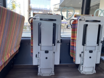 本来、「GIFU HEART BUS」は、定員10名なのですが、車いす1台が乗車するには4席を跳ね上げなければなりません。
